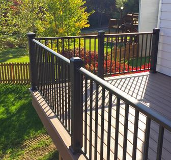 Afco pro aluminum deck railing kits are available in both 36 inch or 42 inch. 6' x 36 rail kit, 8' x 36 rail kit. Black fine textured, bronze fine textured, white fine textured, . Available in black or bronze in either a. Railing kits have one top and one bottom rail with manufactured baluster slots and.